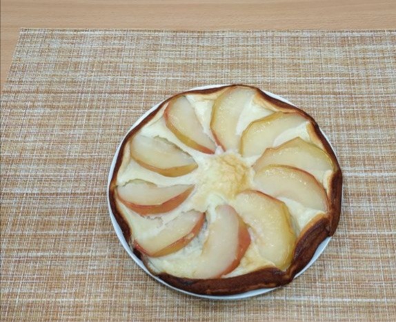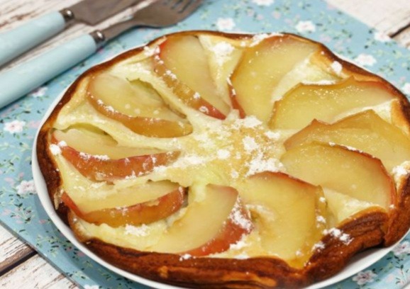 11. Готовый омлет накройте тарелкой и переверните, чтобы яблочный слой оказался сверху.