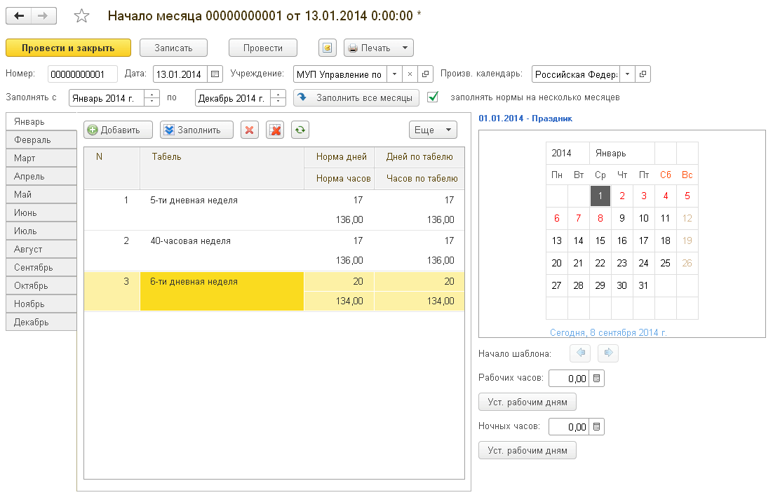 Следующий месяц в 1с