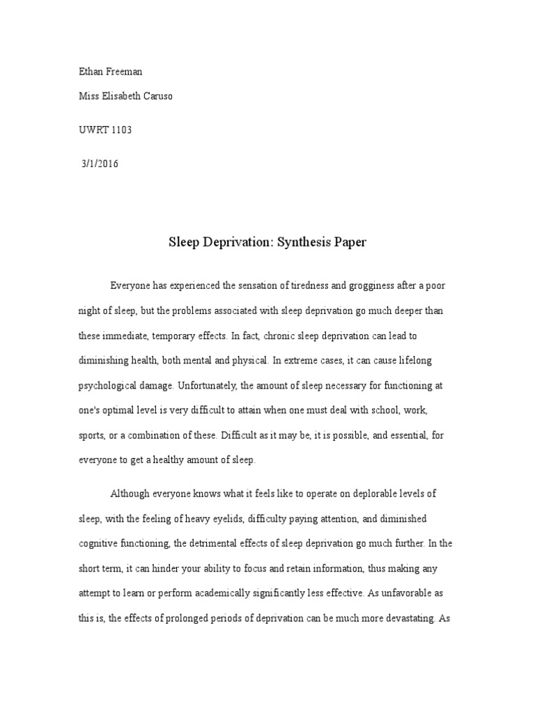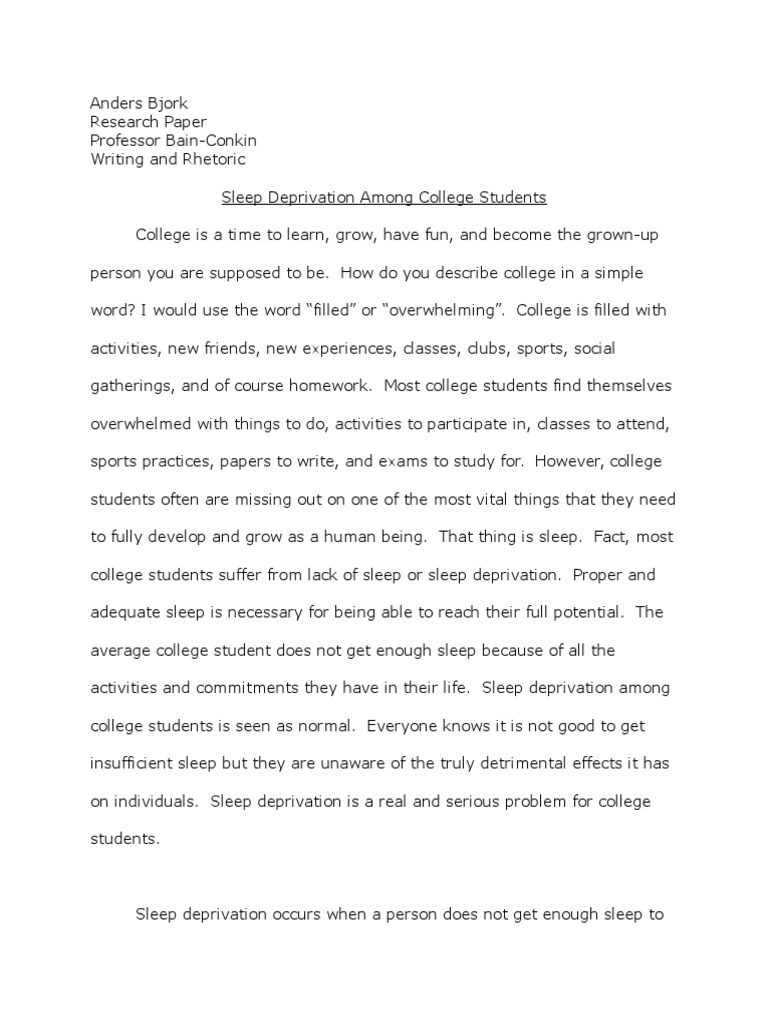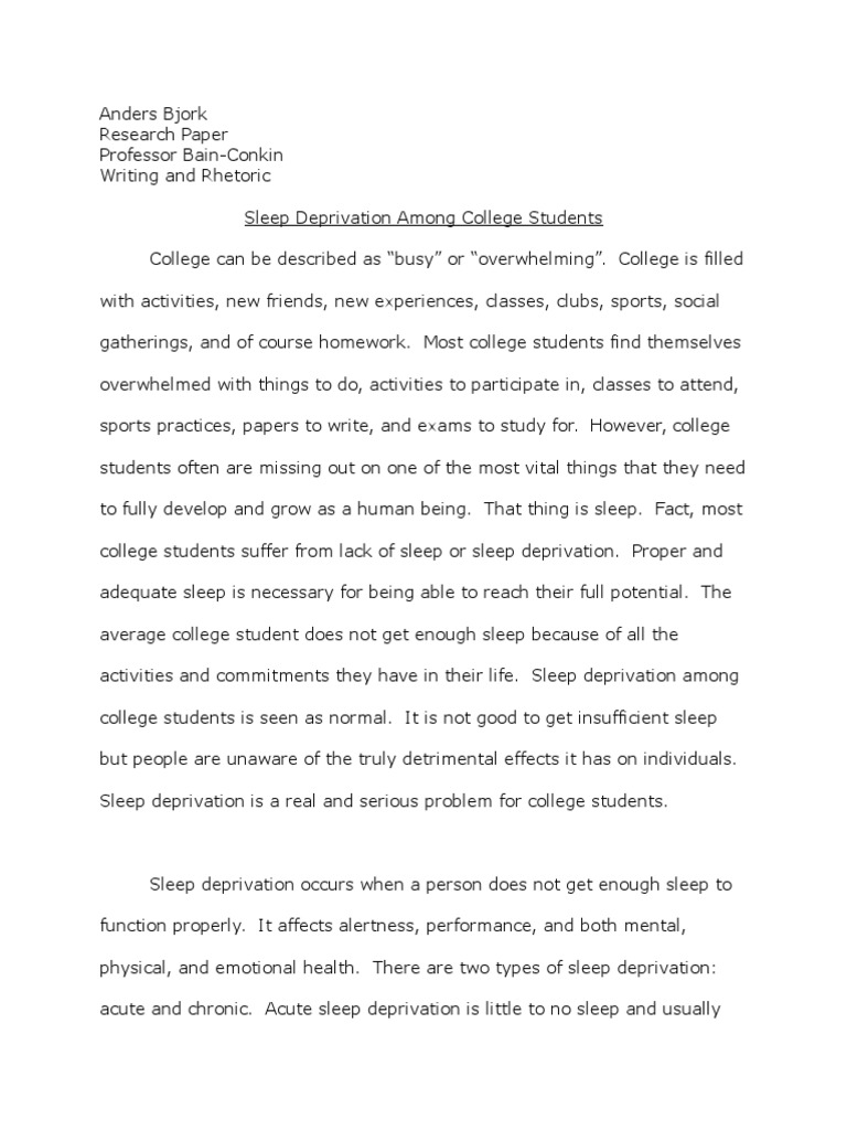 Sample essay on sleep deprivation - TailoredEssays .com