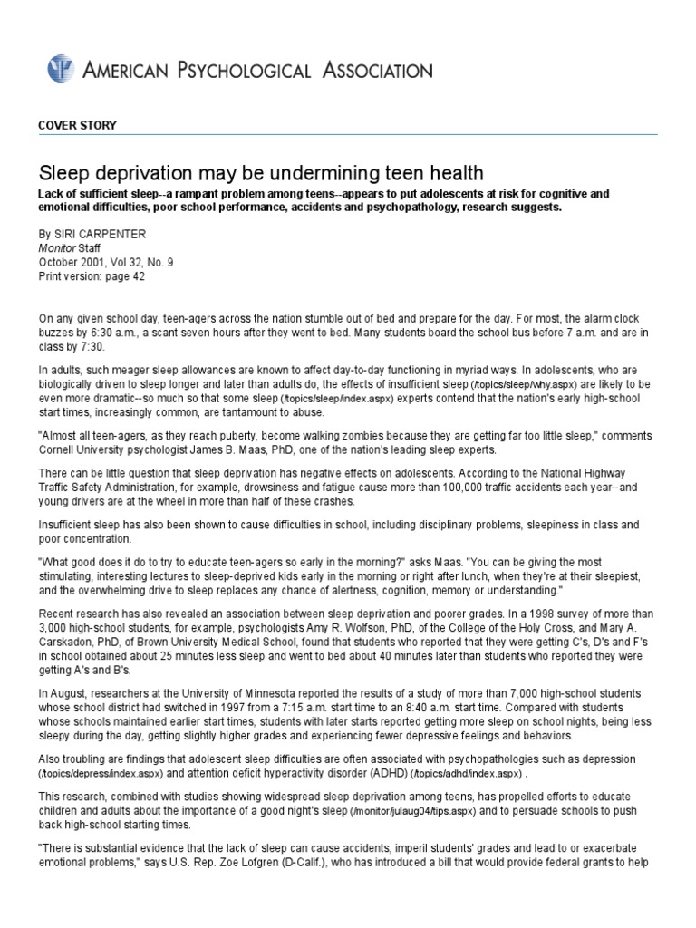 Sleep Deprivation Essay - 2672 Words | Internet Public Library