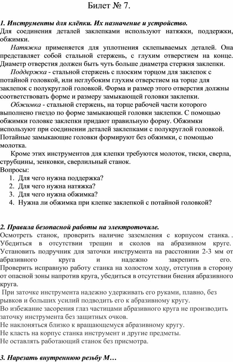 Слесарное дело вопросы