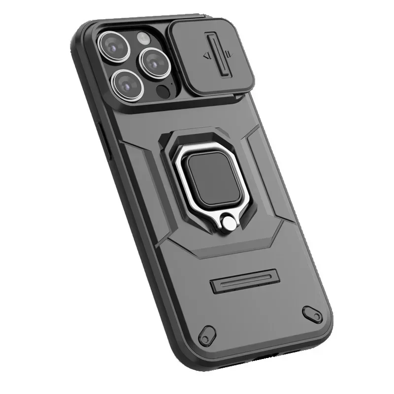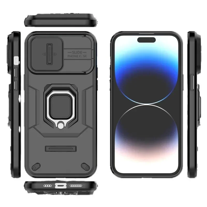 Slide Camera Protector Armor Phone Case For iPhone 15 14 13 Pro Max Plus Anti-fall Protection Finger Ring Stand Kickstand Cover - Купить с бесплатной доставкой