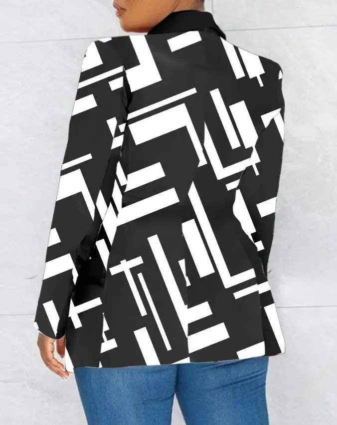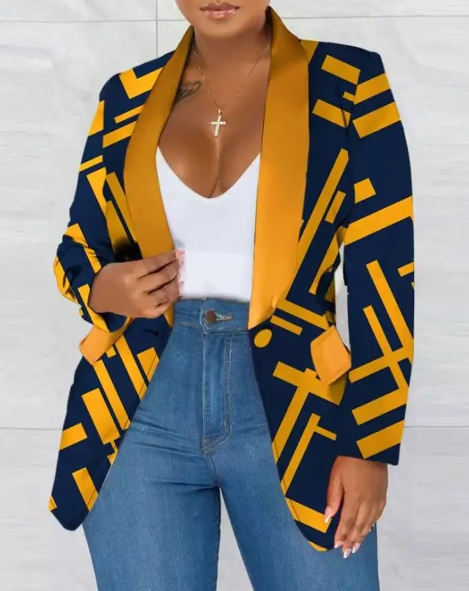 "Slim Fit Suit Coat 2023 Autumn Geometric Pattern Collar Long Sleeves Pockets Design One Buckle Commuting Style Suit Jacket" * Buy Now With Free Shipping Just For $8