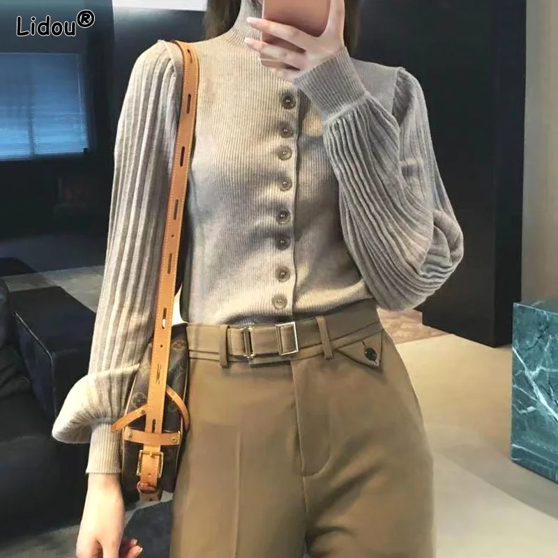 «Slim Turtleneck Button Lantern Sleeve Solid Temperament Office Lady Autumn Winter Thin Women's Clothing Sweaters Intellectual» по лучшей цене на рынке! Всего за 22$ (2090рублей)