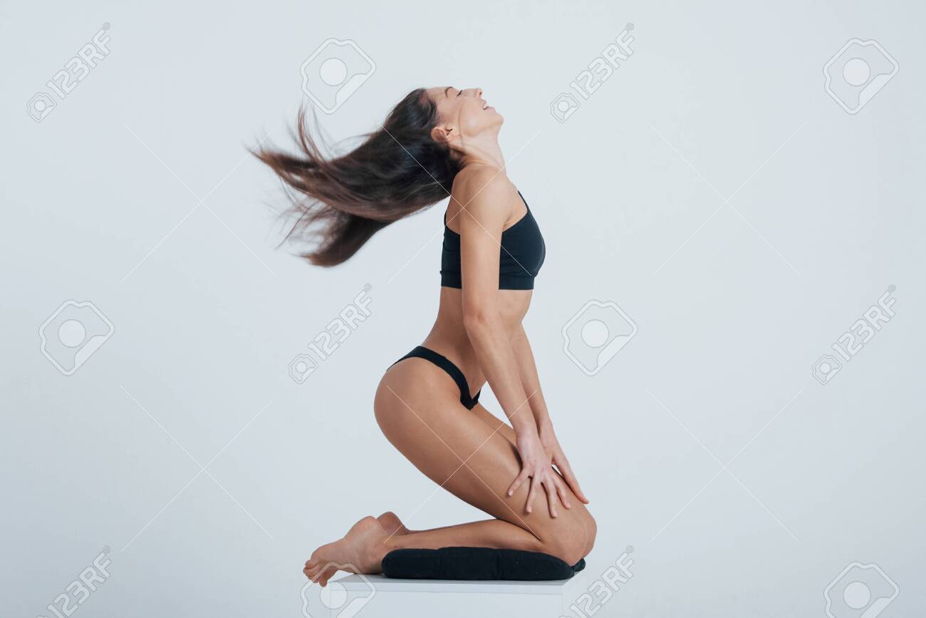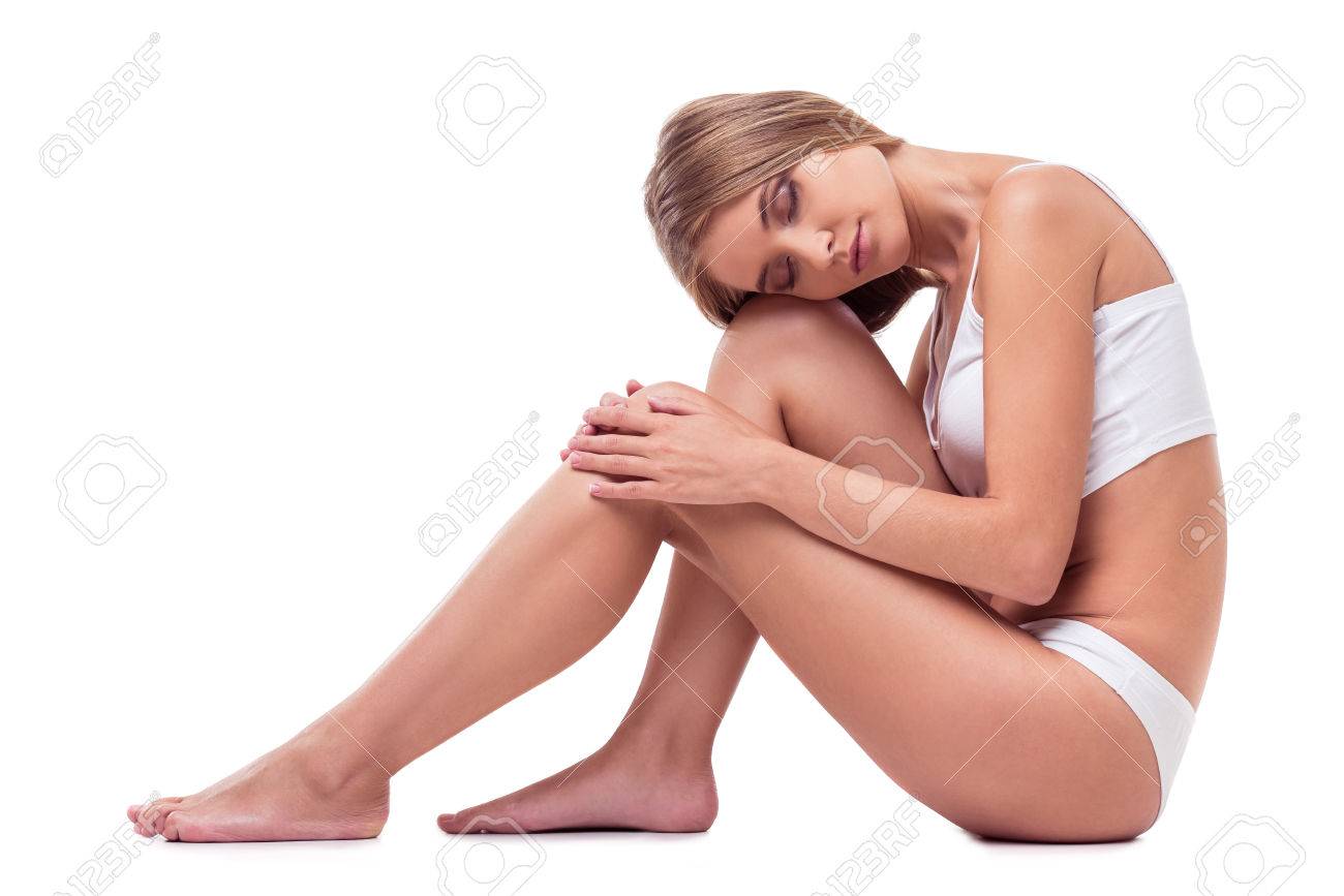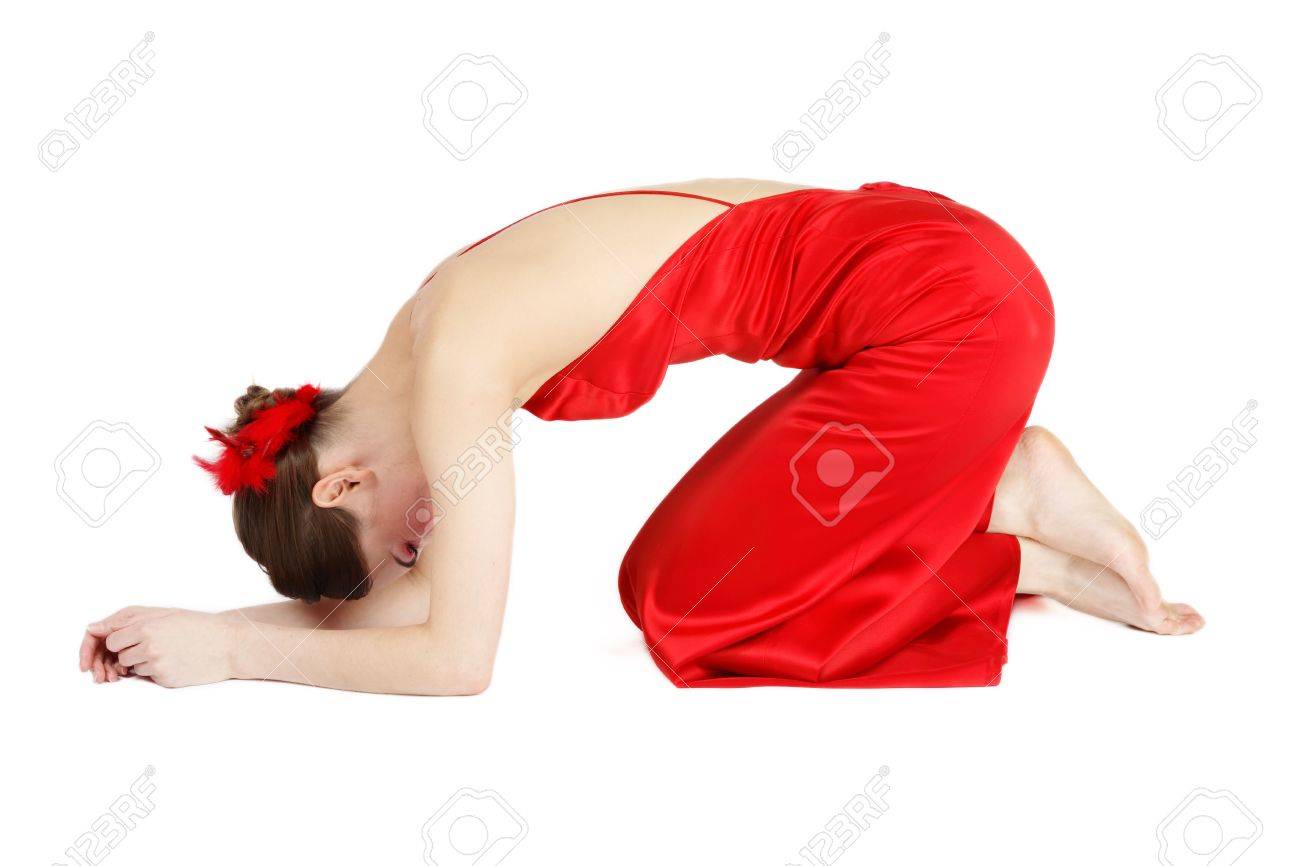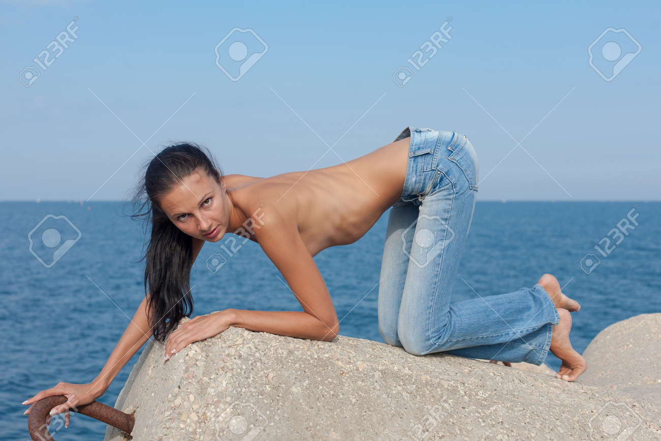 Slim babe on her knees