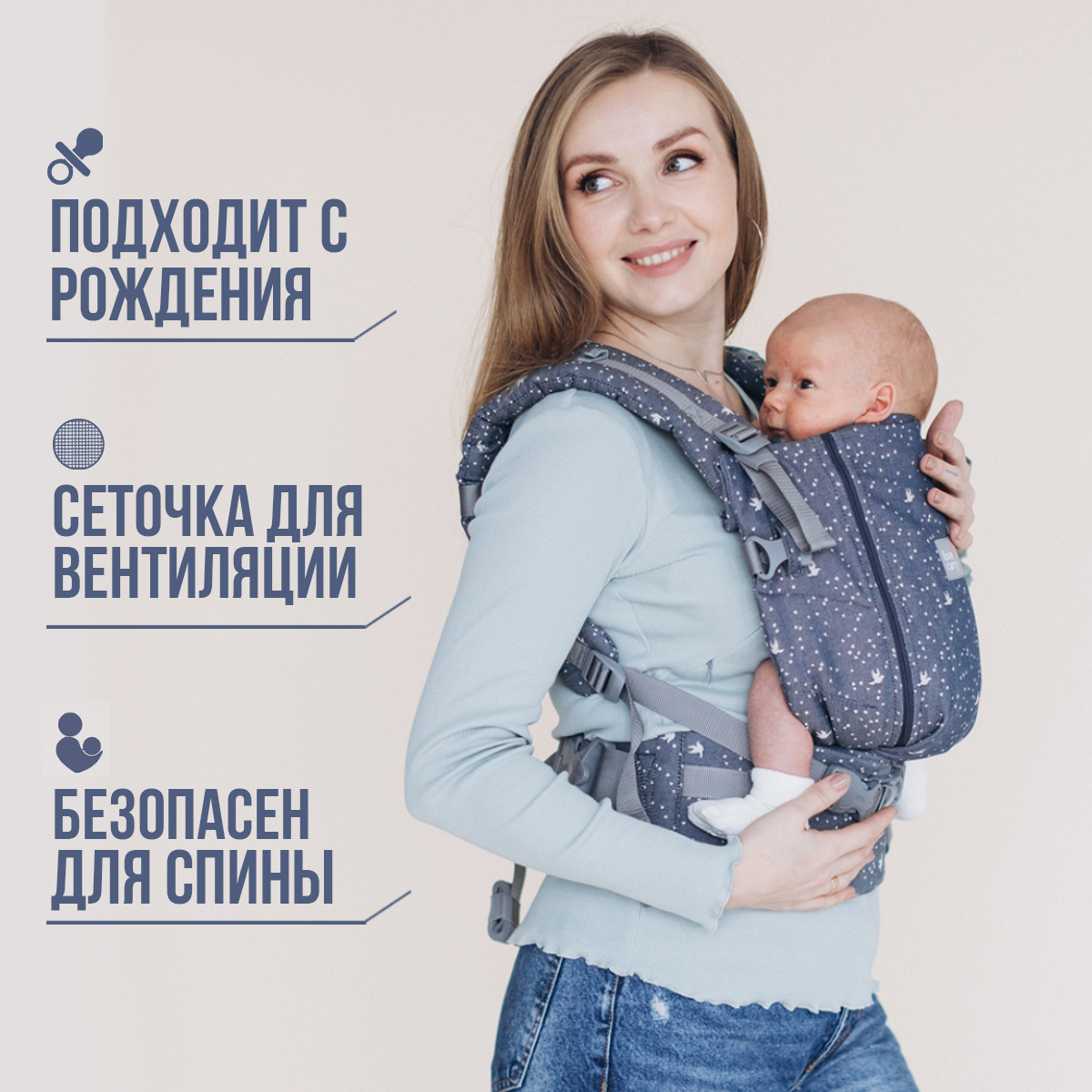 Слинг для новорожденных от 0 до 4 месяцев . В период новорожденности позвоночный столб грудничка пока не окреп, а мышечная система находится в процессе формирования .