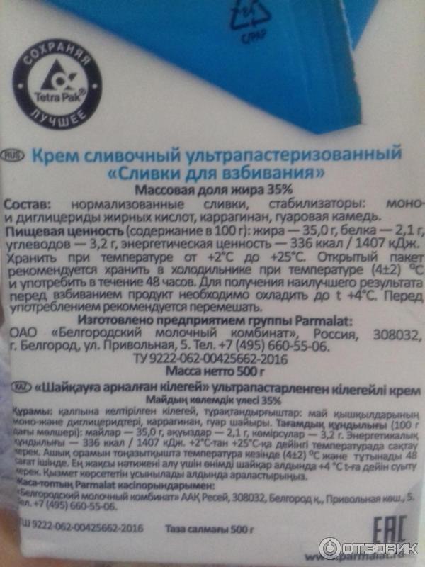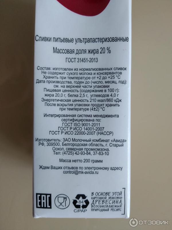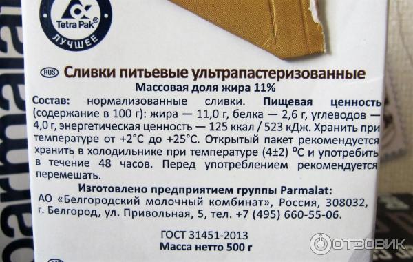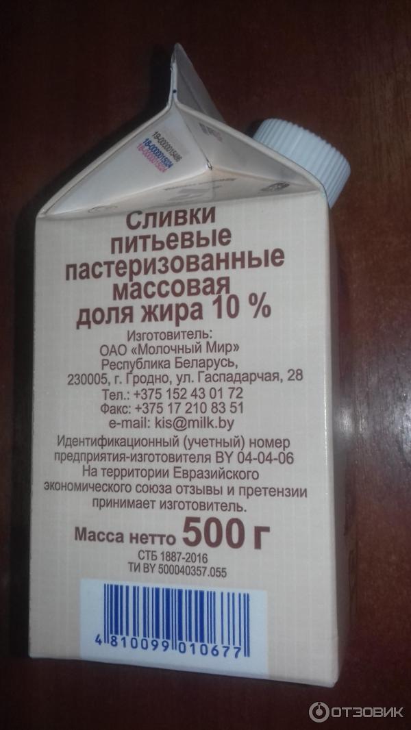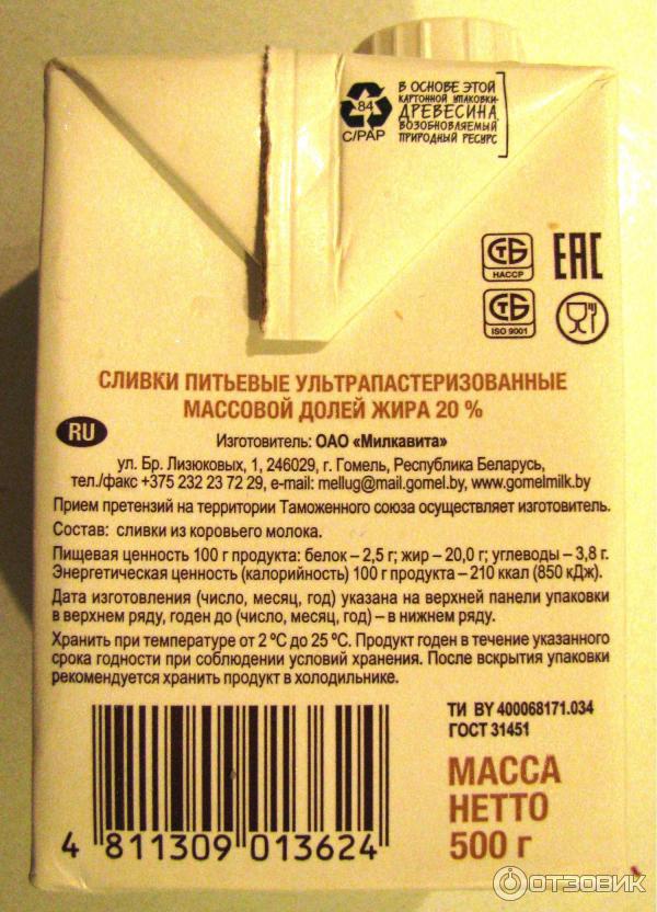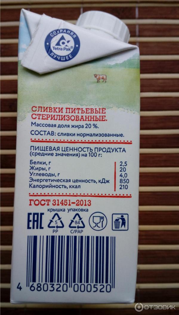 Сливки пастеризованные состав 138 фото