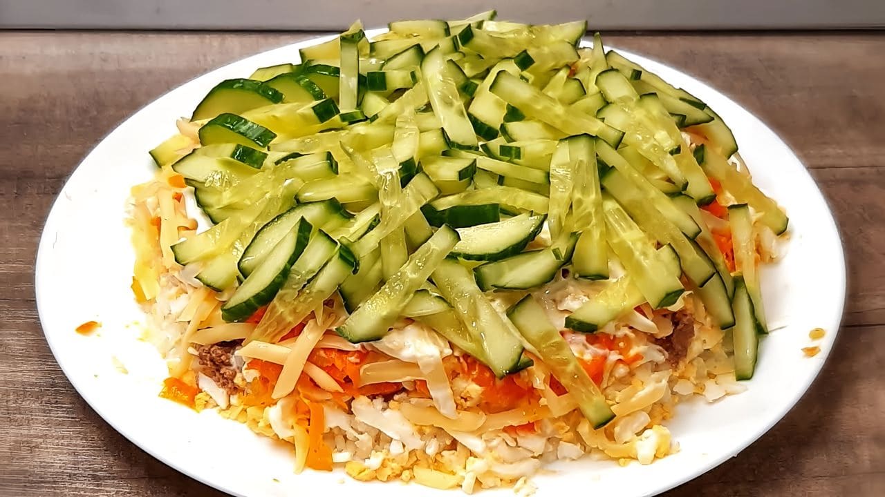 Слоеный салат с огурцом рецепт