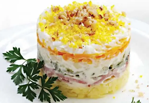 Слоеный салат с огурцом рецепт 100 фотографий