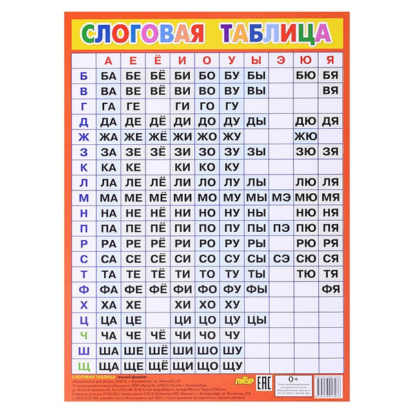 Слоговые таблицы м