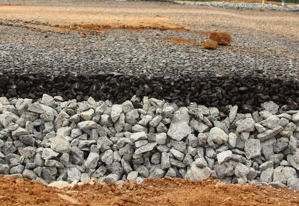 Слой щебня дороги