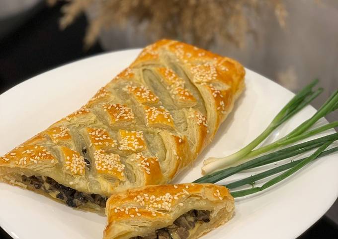 Слойка с грибами из слоеного теста рецепт с фото пошагово
