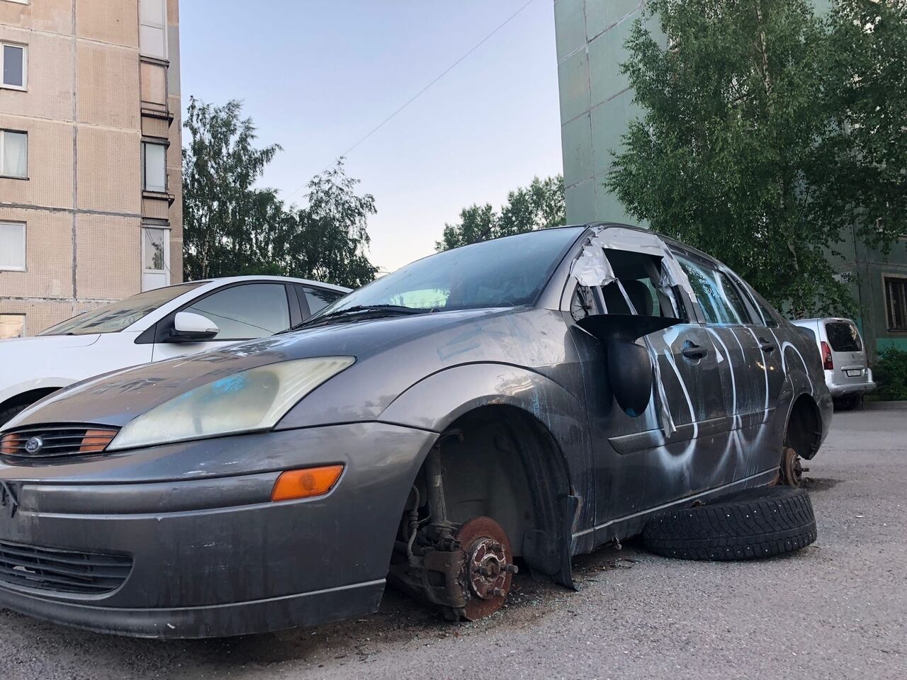 Сломанная машина во дворе