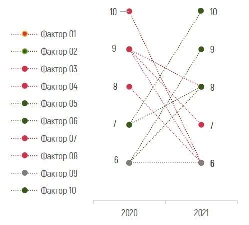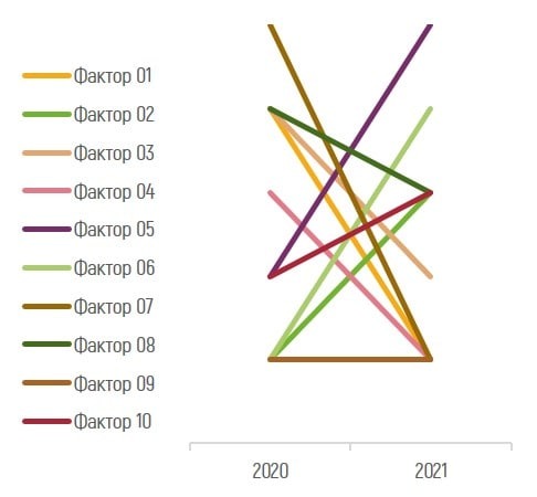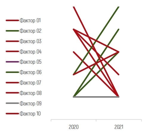 Первое что предлагает excel - это мучительный ад, похожий на спутанный клубок разноцветных ниток. 10 факторов - 10 цветов, абсолютно нерабочий вариант.