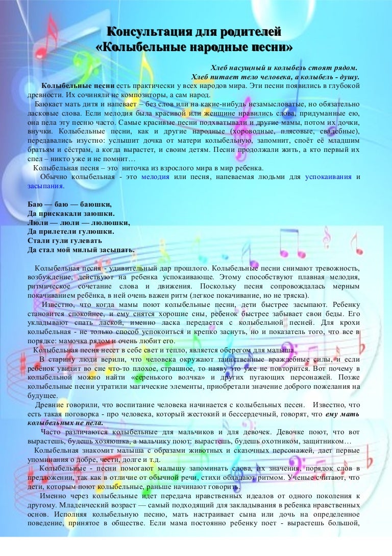 Колыбельные песни . Тексты колыбельных