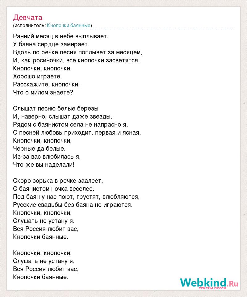 Слова из песни девчата