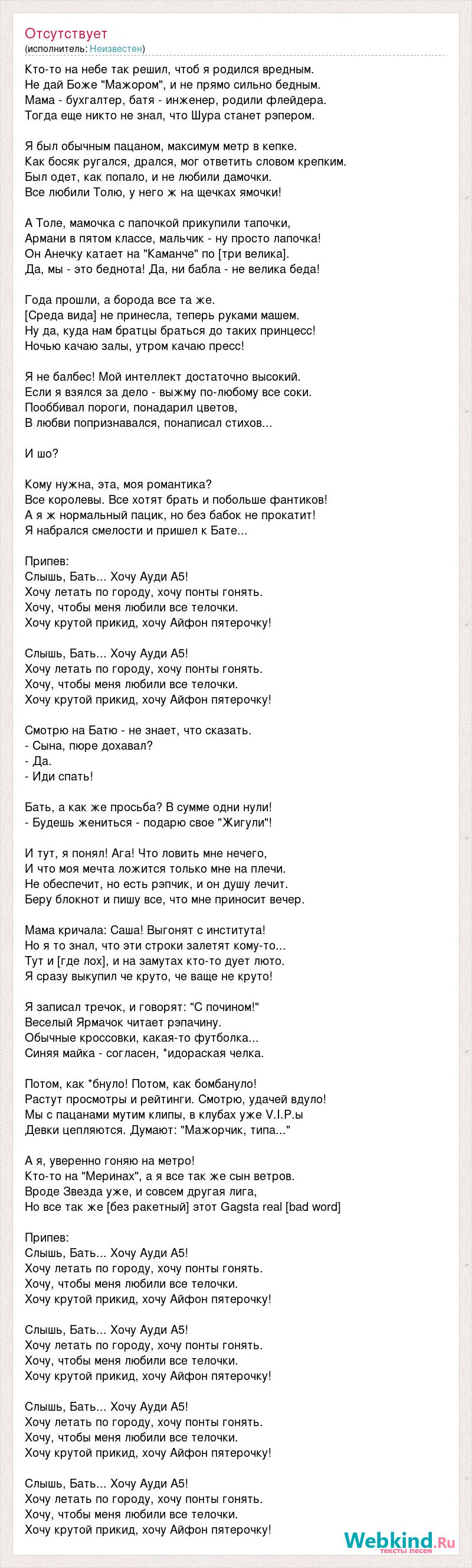 Слова песни слышь ты
