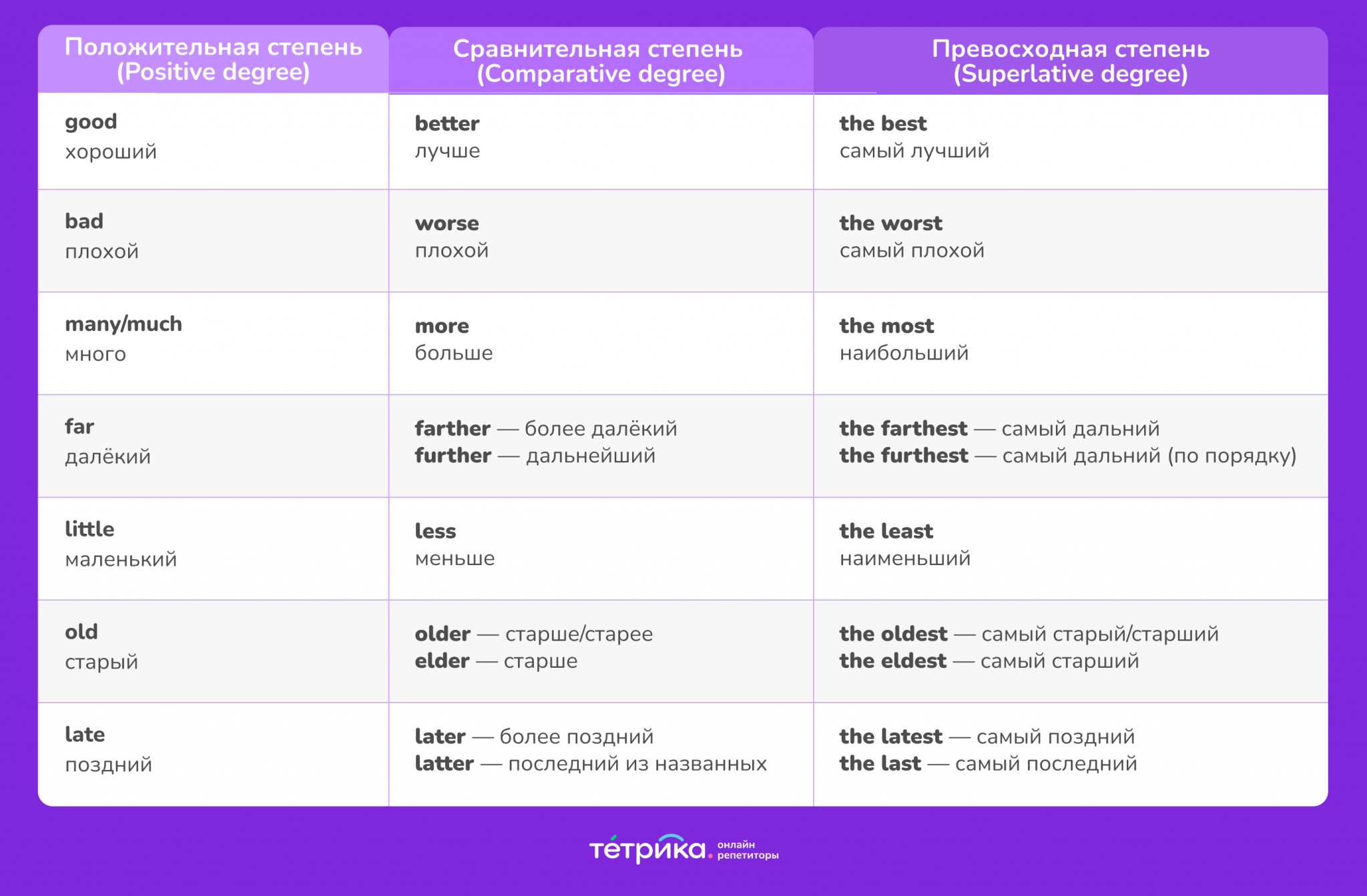 Слова по возрастающей степени