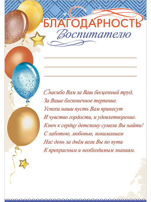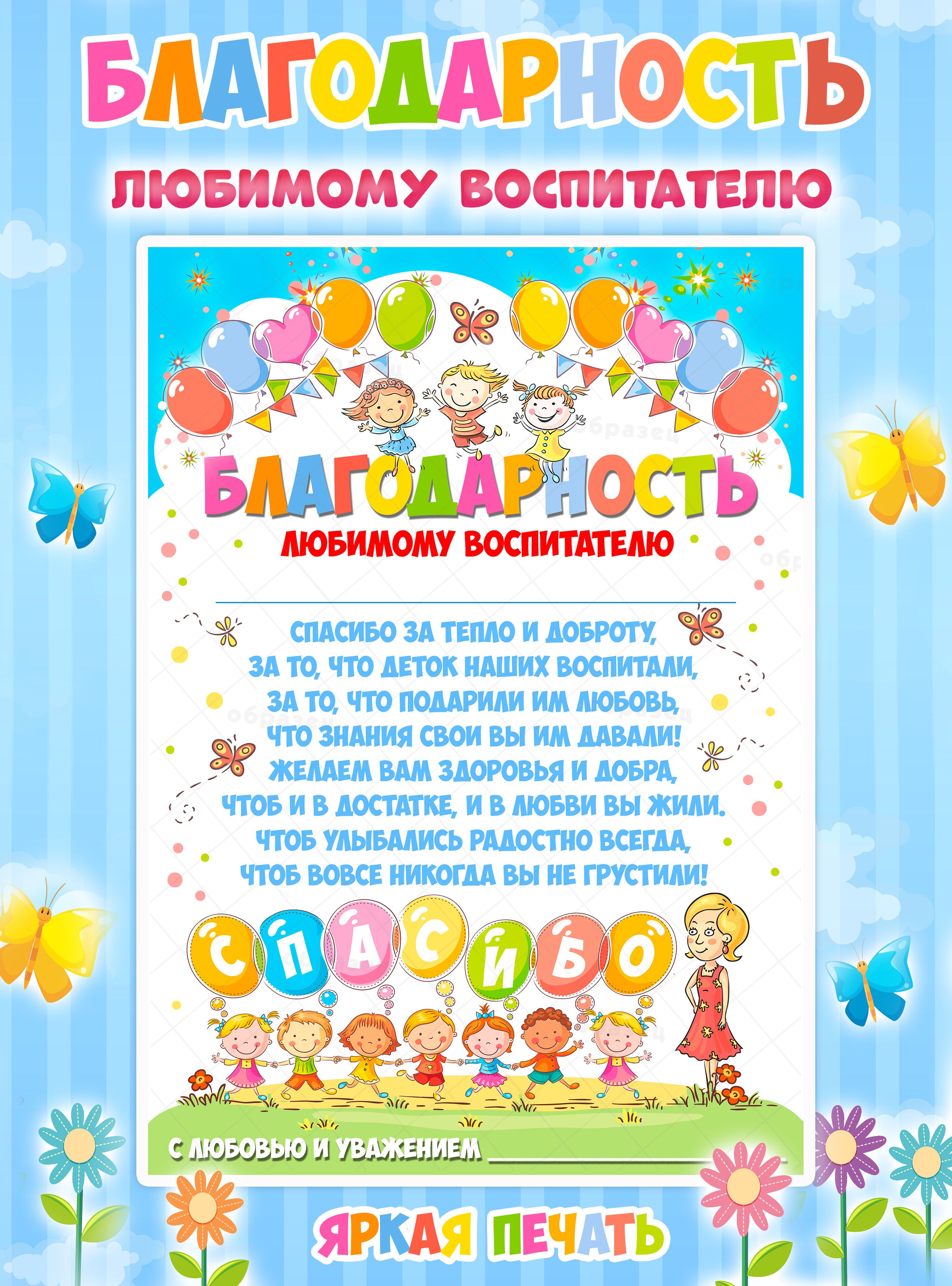 Слова спасибо воспитателю детского сада