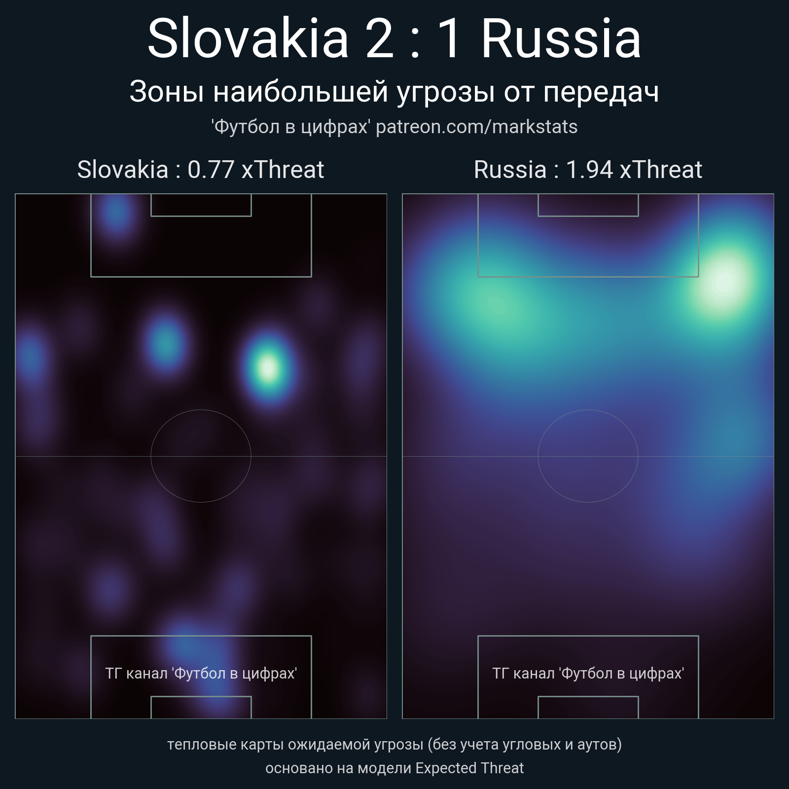 - xThreat без учета угловых: 0.77 - 1.94