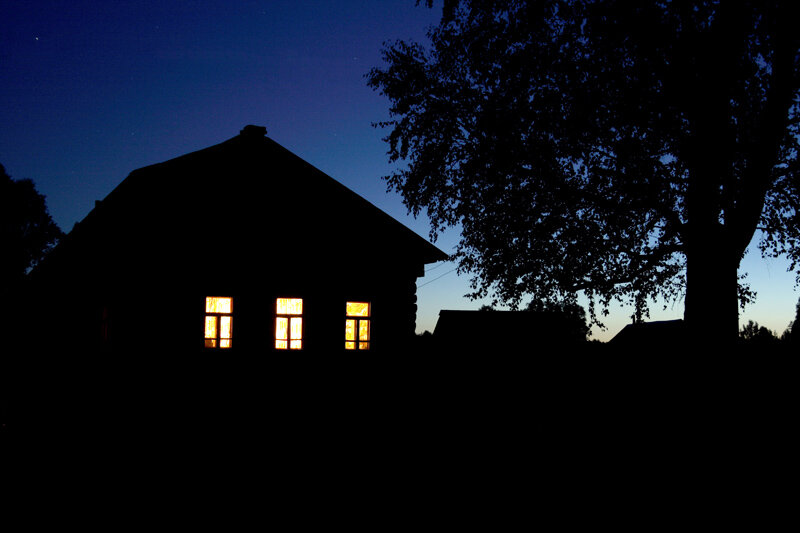 Брёл долго, но я всё никак не мог выйти к дому бабушки. Уже практически стемнело, а я всё шёл и шёл: «Наверное, заблудился» - начал думать я. Вдруг вдалеке увидел огни. Обрадовавшись, я ускорил шаг, и спустя пять минут уже стоял напротив незнакомого мне дома. Так как деревенские люди дружные, я зашёл туда и постучался в дверь.