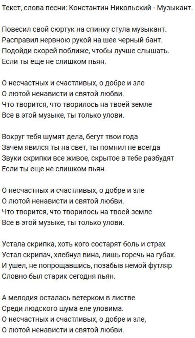 Слушать песню про музыканта