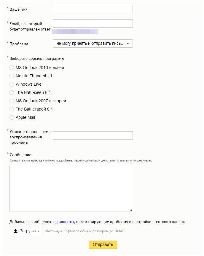 Служба поддержки email