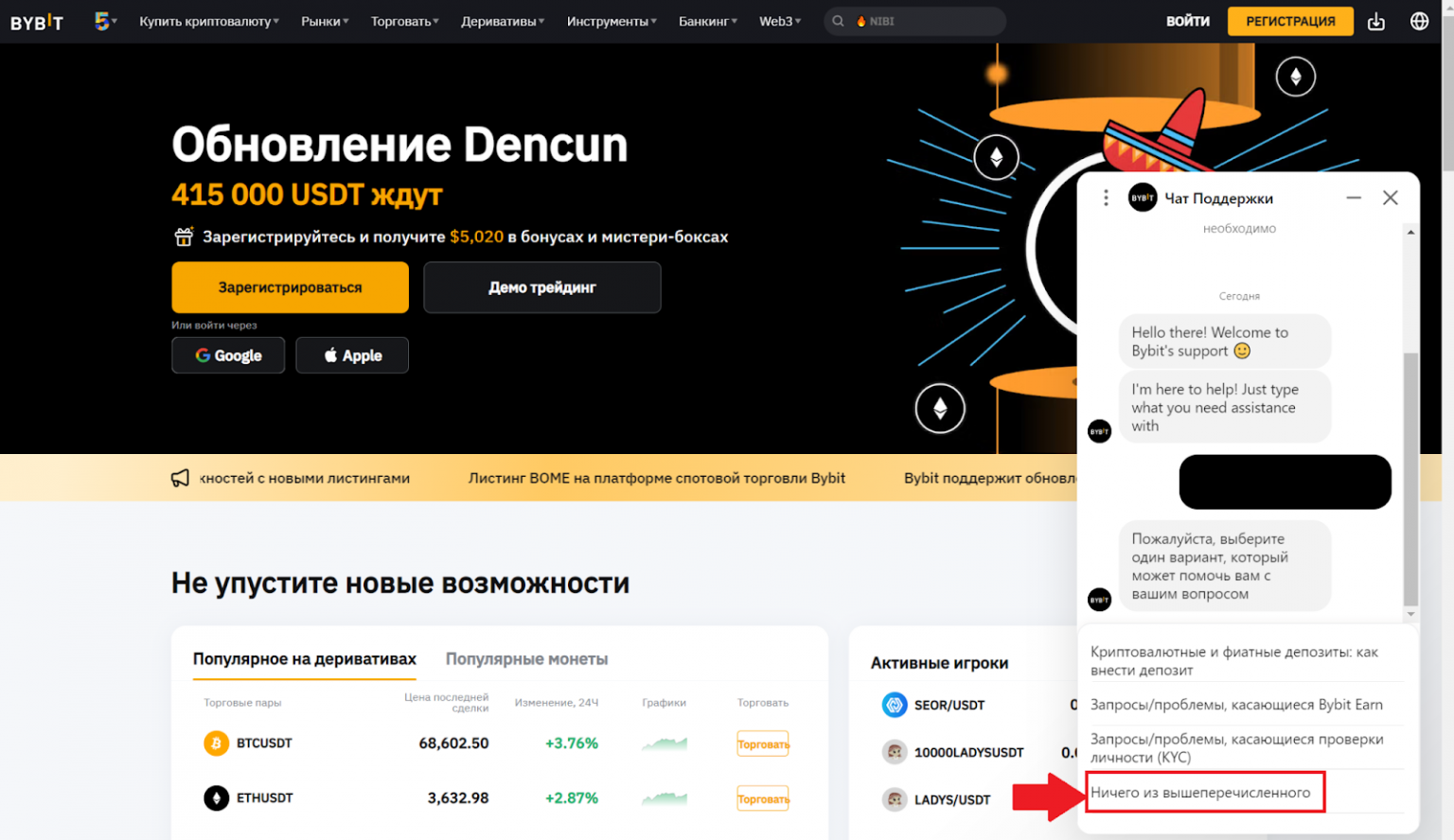Службу поддержки в любой