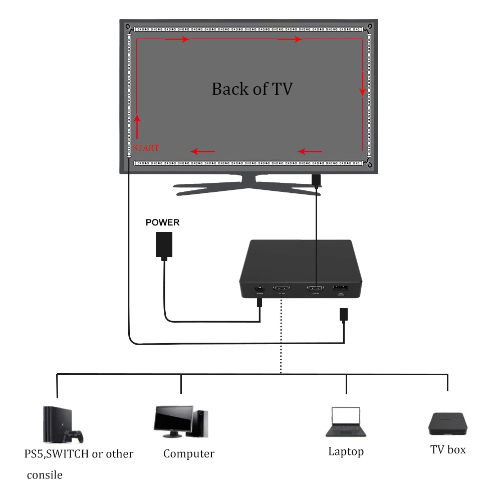 Smart Ambient TV Led Backlight 4K HDMI 2.0 Device Box WIFI Bluetooth Control RGB Tape Screen Color Sync Tuya Led Strip Light Kit - Купить с бесплатной доставкой