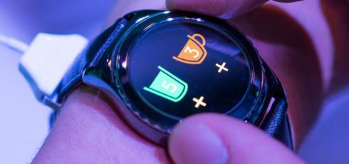 Samsung Gear S2 . Вращая безель, вы можете легко выполнять навигацию по интуитивному интерфейсу, элементы которого расположены по кругу .