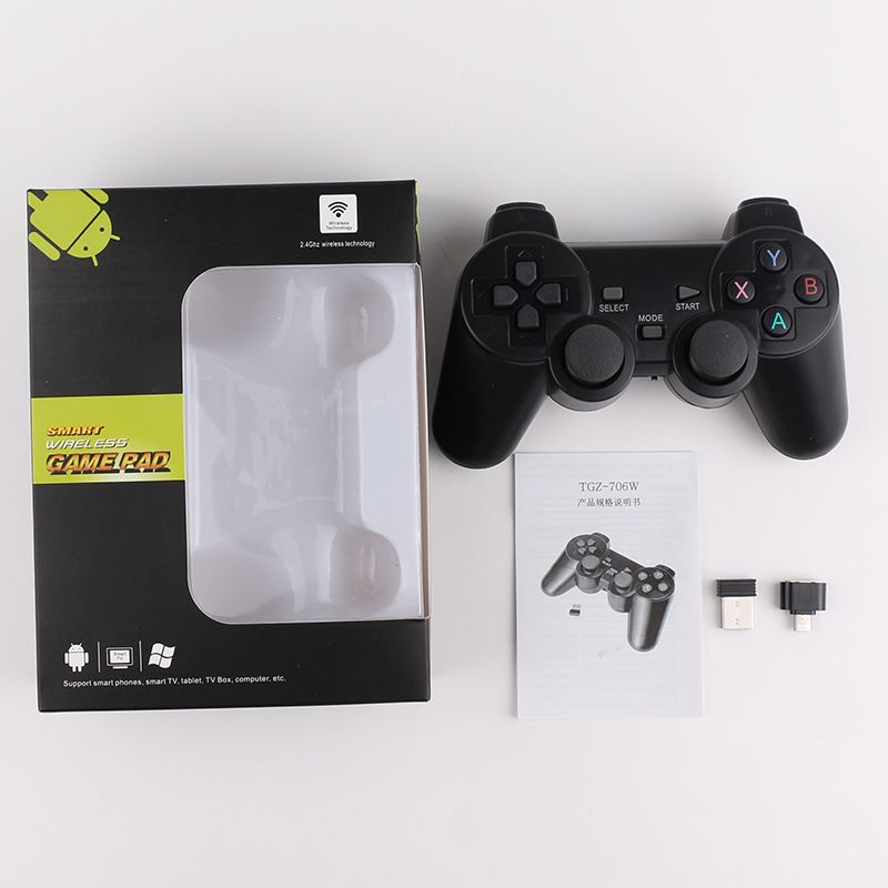 TGZ-850M Wireless Game Controller with micro USB OTG adapter; . . . - Fit for Android smartphone/Table/TV box/ Smart TV(Compatible with PC/PS3) - Uses 2 .4Ghz RF wireless transmission technology, distance > 8m - Supports Android standard menu key . . . 1x Wireless Gamepad . 1x USB Receiver . 1x OTG Converter . 1x User Manual . TGZ-850M Wireless Game . . .