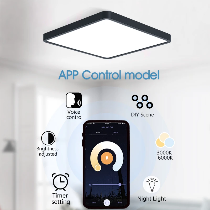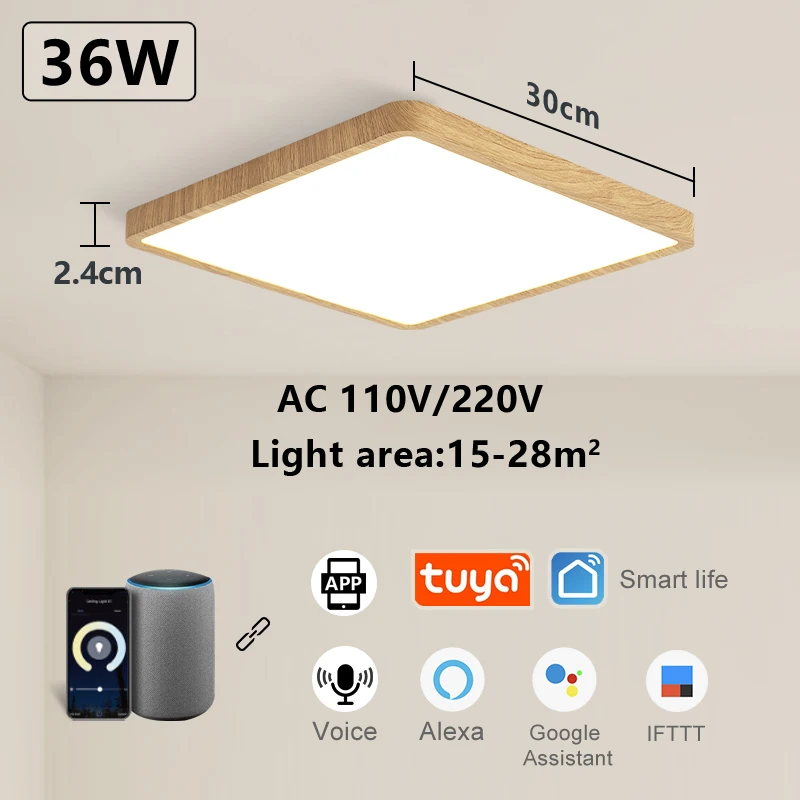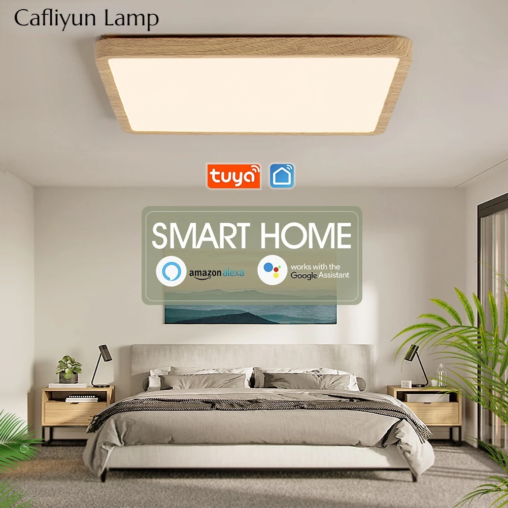Smart LED Ceiling Lamp for Room Wood Grain App Voice Control Alexa/Google Remote Control Square Ceiling Lights Living Room - Купить с бесплатной доставкой