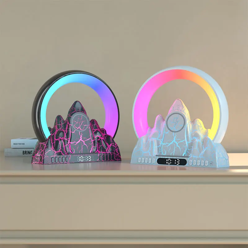 IVZWZMMyiHere you can buy Smart Station Wireless Charger Alarm Clock Bluetooth with APP Control RGB Desk Lamps Charging LED Atmosphere Light with free delivery to your post office.