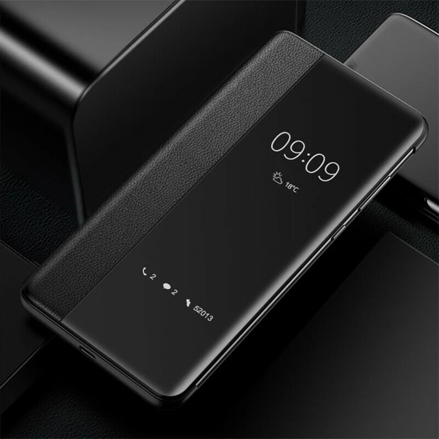 HUAWEI P40 Pro smart view flip cover, the phone case is made of PU material, whose crystal-clear window that enables you to get more information . Less power consumption, longer battery life .