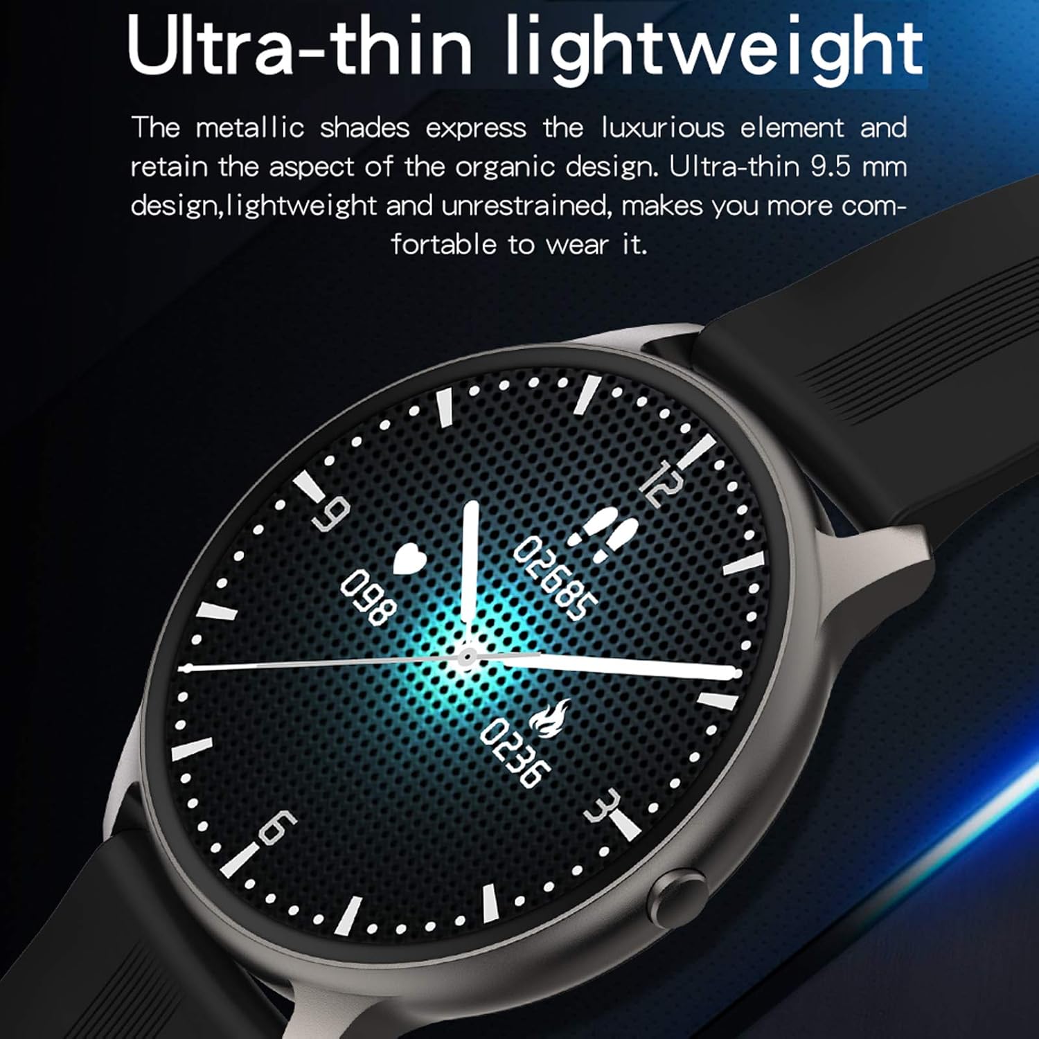 * Key Points:IP68 waterproof, 1 .3inch 360*360 full-fit round retina display, 7 days battery life * RAM: 128KB, ROM: 128KB extend 128MB * Product type:Sporty smart watch * Size:48*48*13 .2mm with band 231mm * Watch case:Alloy watch case, mineral glass mirror, plastic back case . * Watch band:Ediable Silicone * Charging Magnetic pin charging type, 2 .5h to full charge .