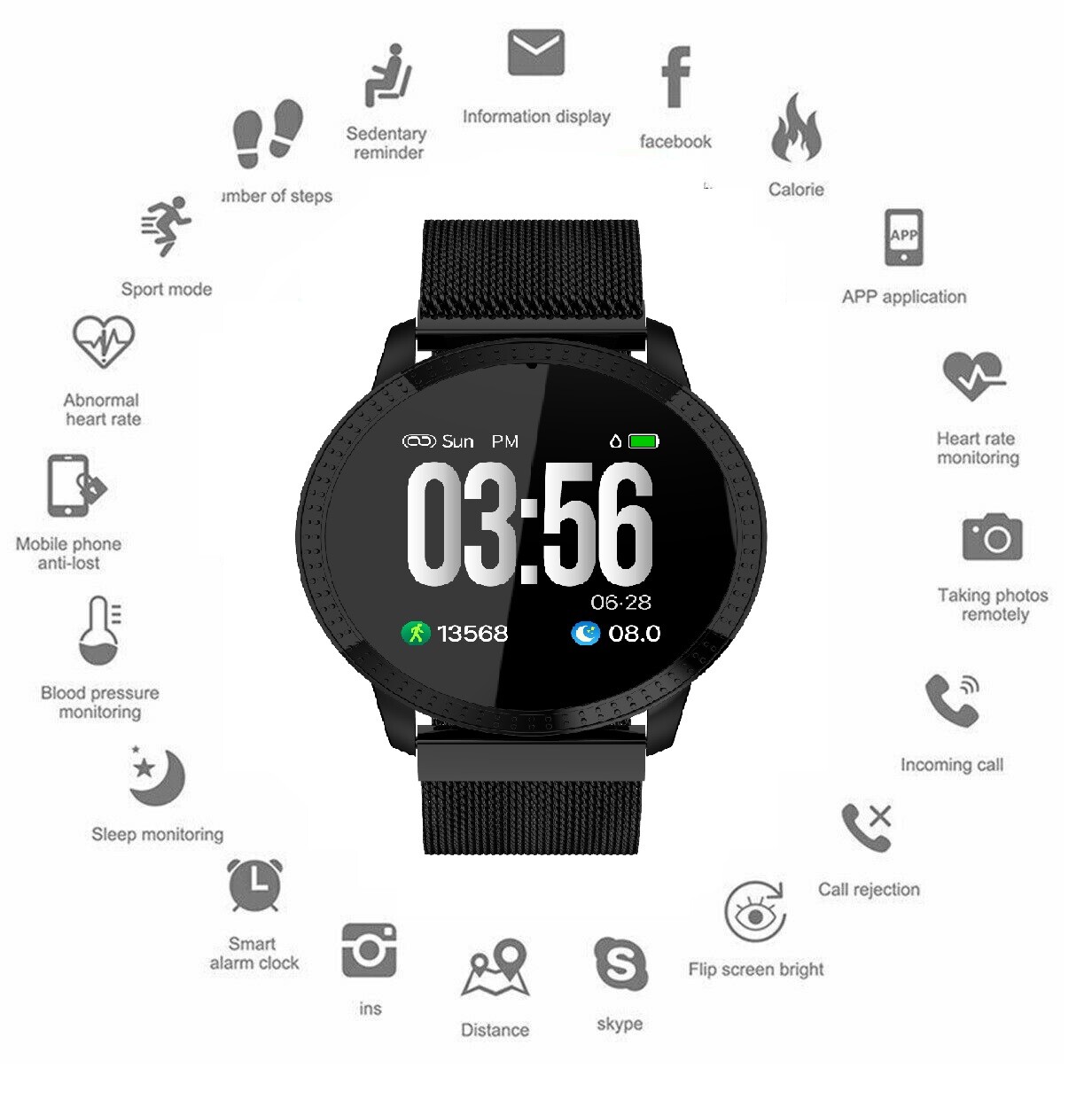IP68 Rating: The IP68 rating ensures that smartwatch doesn't corrode and does not stop working when it falls into the water . LED Light Data: The real-time LED sensor ensures that heart rate and blood pressure information is recorded accurately .When you are working out, you can measure your heart rate and see how many calories you are burning .