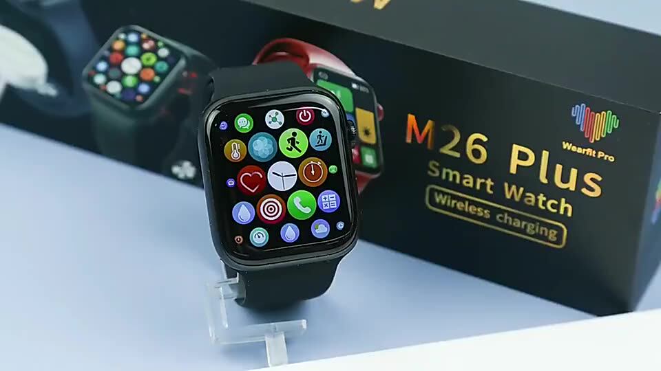 M26 Plus Smartwatch -Review of Features . Here is a popular series 6 smartwatch , a wearable with upgraded hardware as well as software . The wearable also has a much wider display, and added features . See the initial review below of the M26 Plus smartwatch , the details on its specs, and features . Design and Display