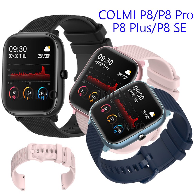 P8 Smartwatch . Live boldly with COLMI p8 , a versatile and approachable everyday smartwatch packed with key fitness & smart features, vibrant colors and an easy one-button design . Soft silicone strap makes COLMI P8 lightweight and comfortable wear on your wrist and is available in 5 beautiful colours with matching swappable straps .