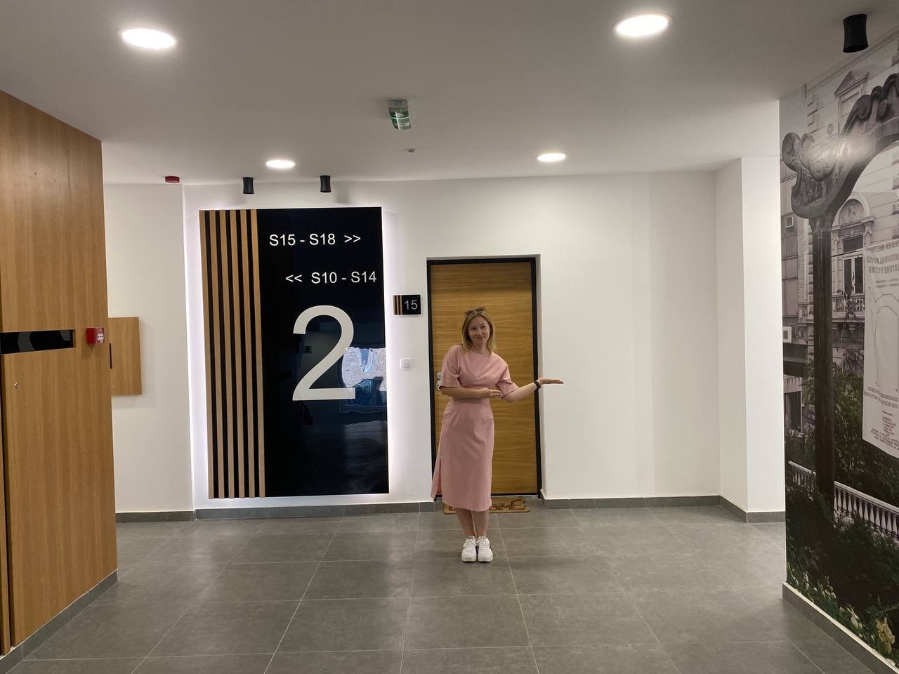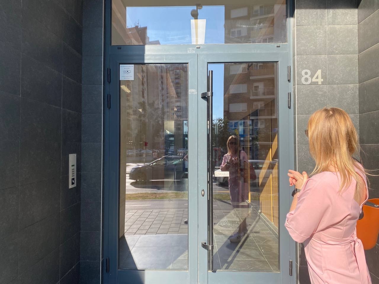 На домофоне нужно нажать 16 и знак #, администратор откроем вам дверь. Затем идём до лифта и едем на 2 этаж.