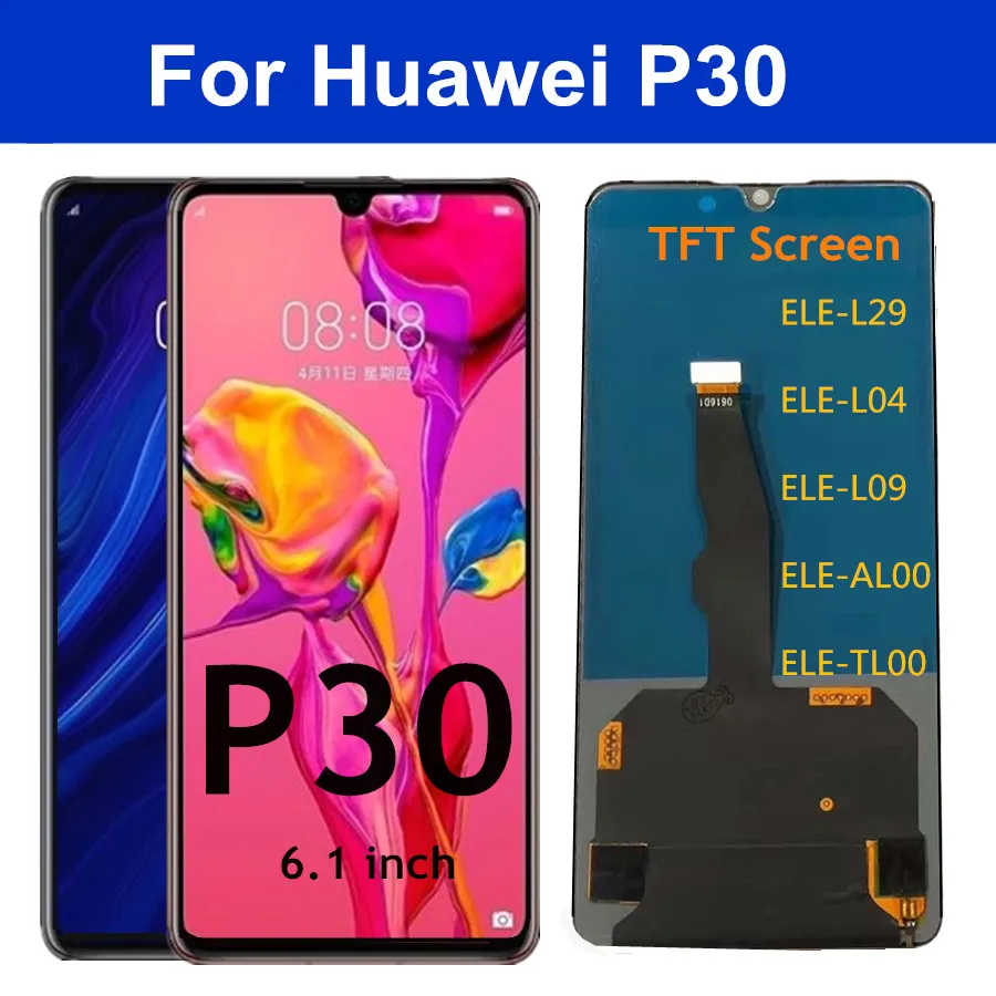 Huawei p30 ele l29 Android smartphone . Announced 2019, March . Features 6 .1" OLED display . KIRIN 980 (7 nm) chipset, 3650 mAh battery, 128 GB storage, 6, 8 GB RAM