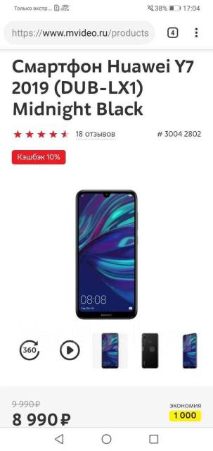 Отзывы владельцев и покупателей: Смартфон Huawei Y7 2019 (DUB-LX1) Midnight Black, М .Видео