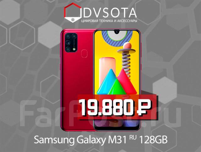 Samsung Galaxy M31 128GB Red (RU) 22000₽ Samsung Galaxy M31 128GB Blue (RU) 22500₽ Ситилинк [2] 20700 - 20720₽ Samsung Galaxy M31 128Gb , SM-M315F, синий: 20700₽ Samsung Galaxy M31 128Gb , SM-M315F, черный: 20720₽ GearBest: 309$ Global Samsung Galaxy M31 128GB 6GB Mobile Phone 6000mAh M315F/DSN 6 .4 inch Exynos 9611 4 . . .