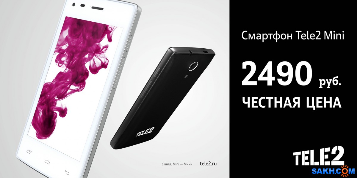 Смартфон Теле2 Mini . Самый бюджетный вариант смартфона от Теле2 стоимостью до 2500 рублей . В целом, смартфон Tele2 Maxi Plus очень неплох . С его помощью можно делать достаточно качественные фото, с комфортом пользоваться интернетом .