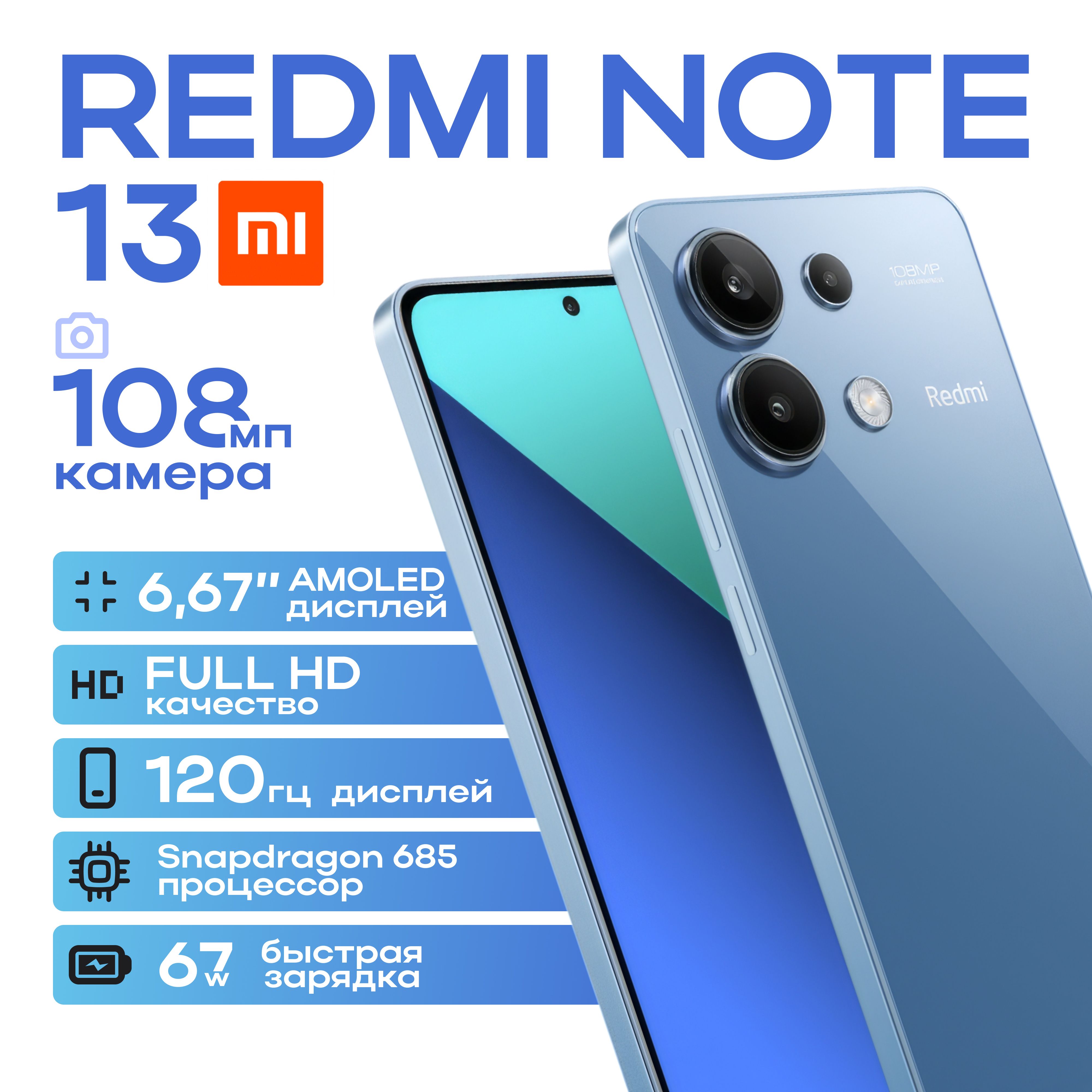 Смартфон redmi note 13 8 256gb голубой 132 фотографий