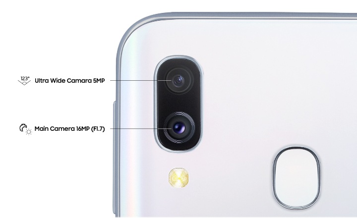Galaxy A40 оснащен сверхширокоугольной камерой с углом обзора 123 градуса — таким же, как у человеческого глаза, и 16-мегапиксельной камерой для ярких и четких фотографий в любое время дня .