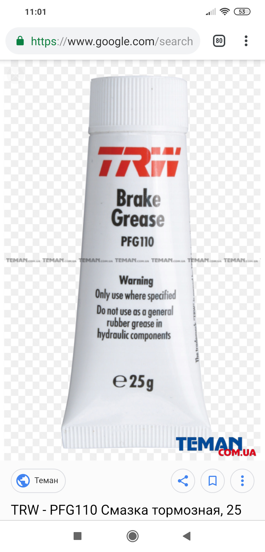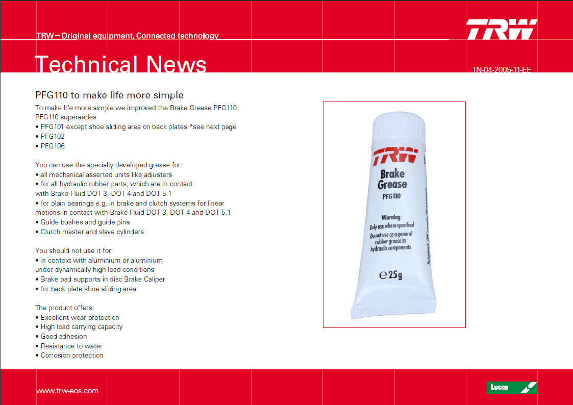Смазка суппортов trw 110