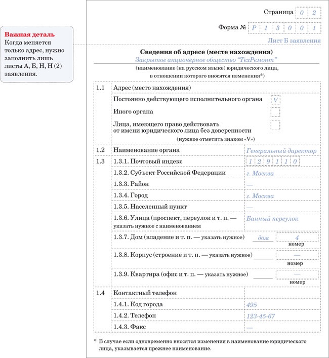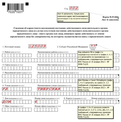 Смена адреса как заполнить форму 13014