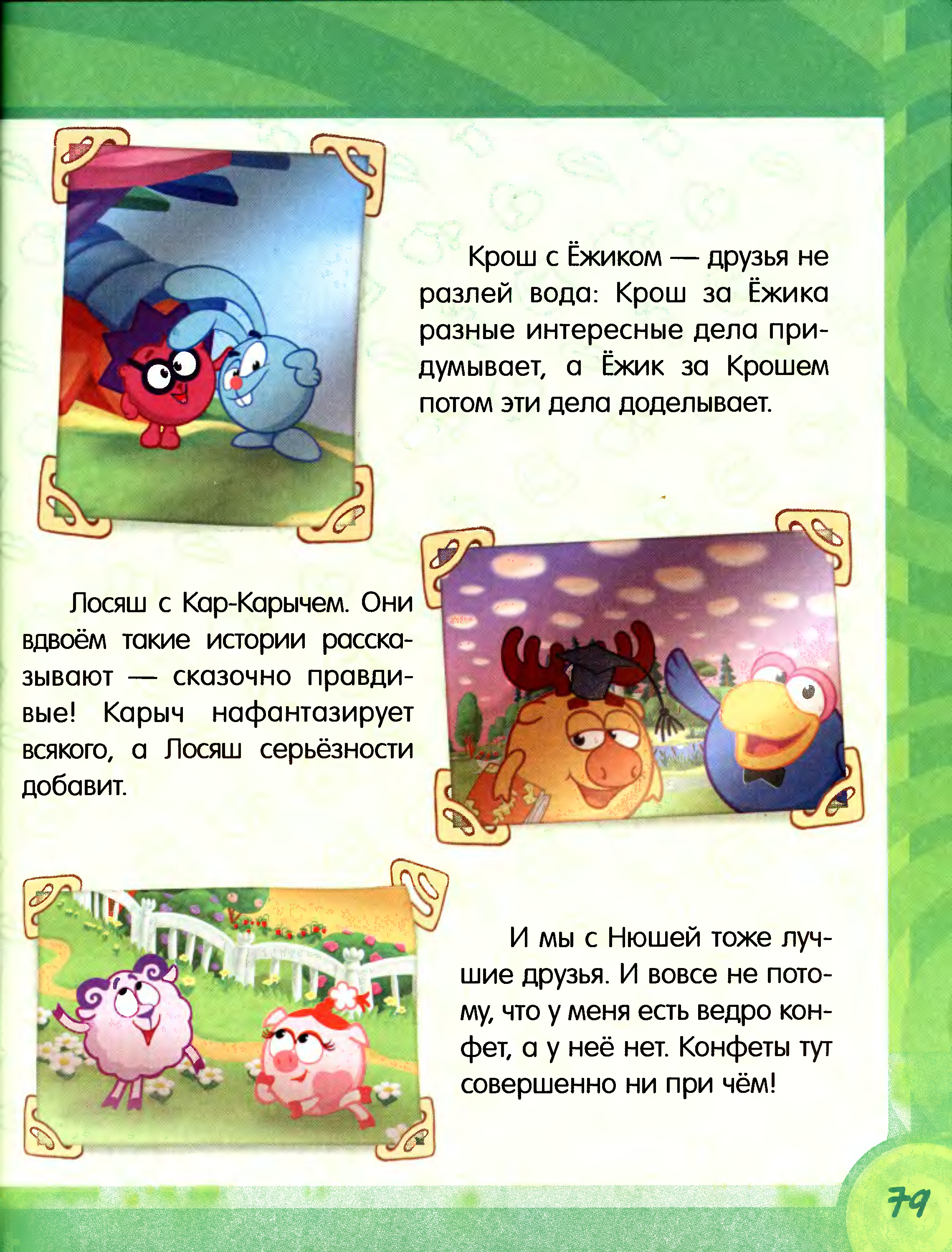 Персонажи хуманизированы (то есть не животные, а люди). Крош, Бараш: 17 лет. Нюша, Ёжик: 16 лет. Карыч, Ло...