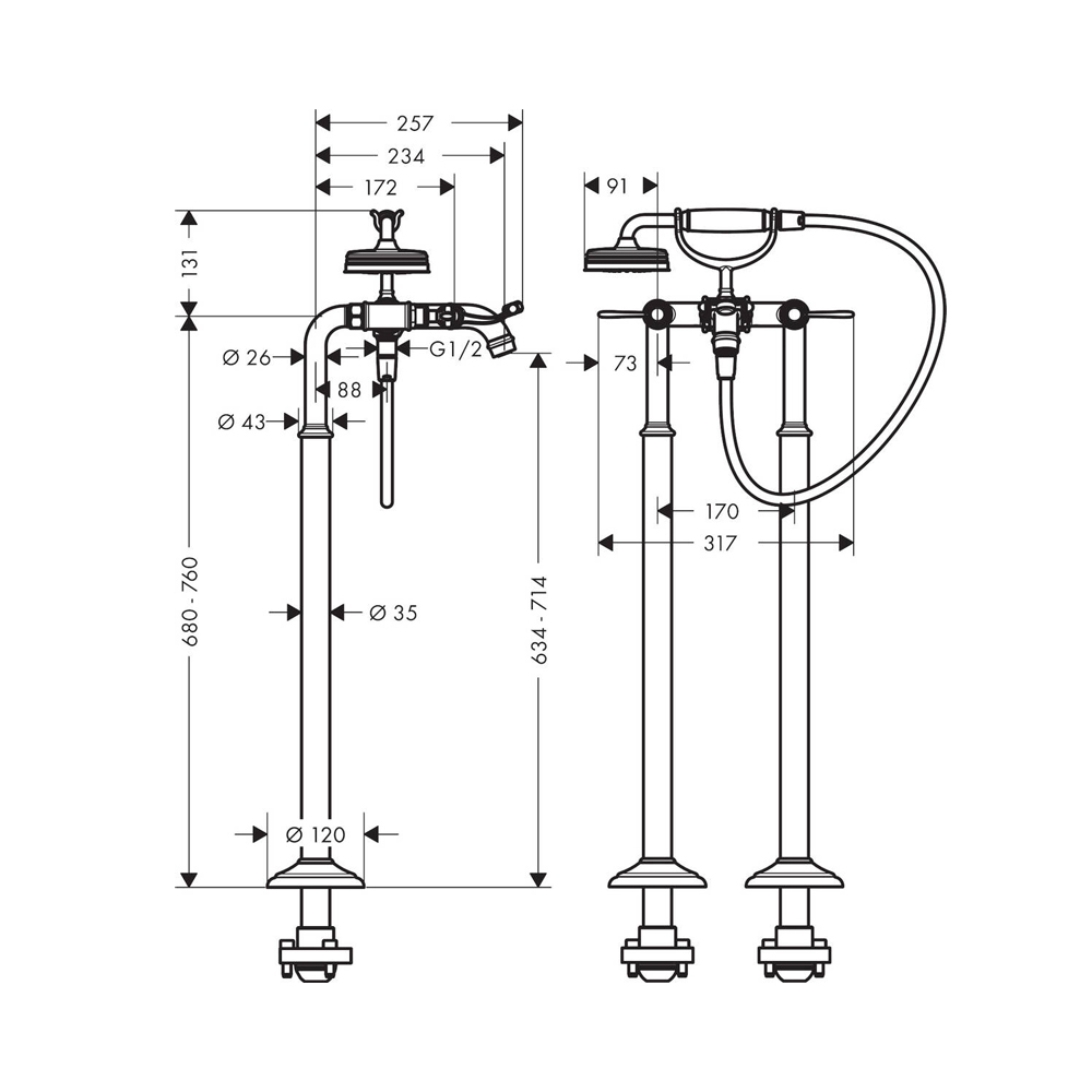Смеситель для ванны с пола