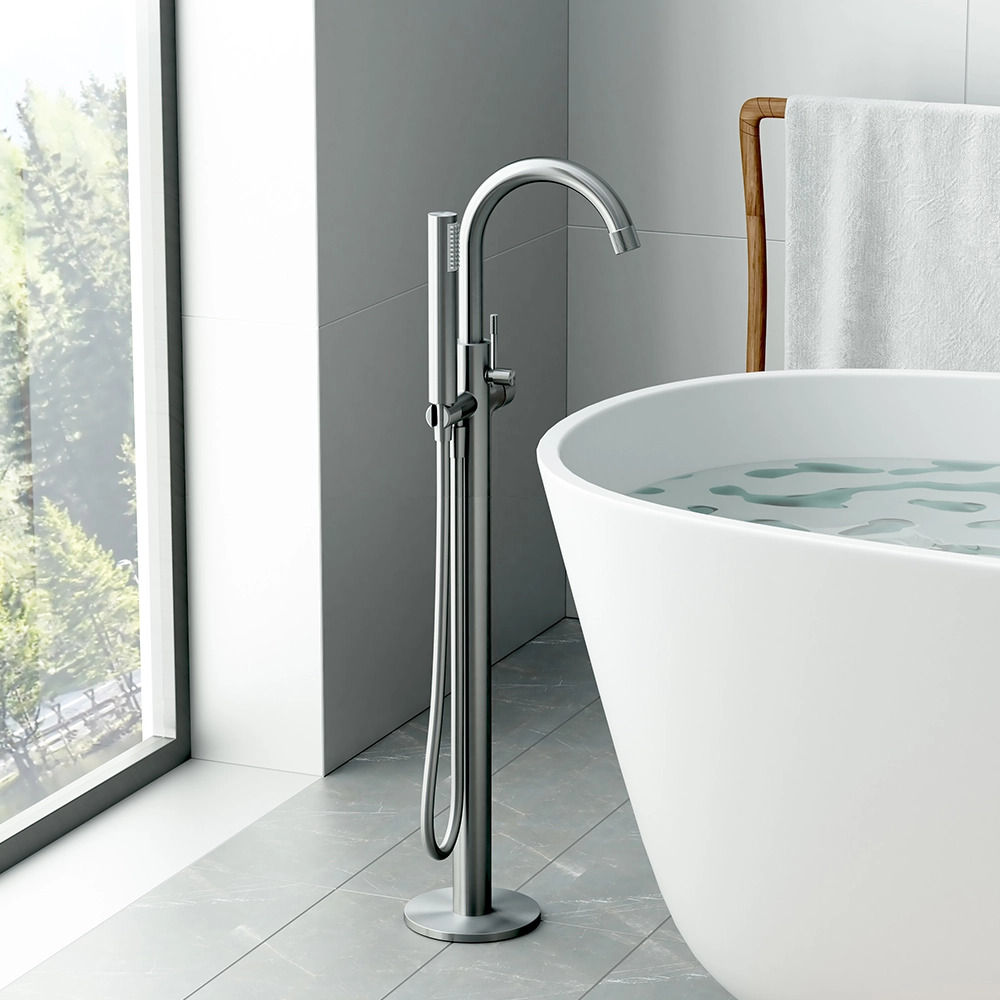 Смеситель напольный для ванны хром 145 фотографий